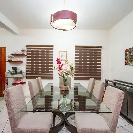 Casa Con Alberca Y Amplio Espacio Para Tu Familia, som ligger cirka 25 minuter till fots från Parque, Portal Maya, erbjuder en terrass med utsikt över poolen. Villan med 4 sovrum och 4 badrum, som ligger i närheten av Precision Pilates Playa, erbjuder pool och trädgård för en härlig vistelse.